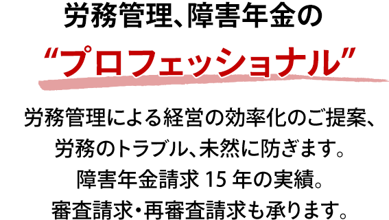 労務管理、障害年金の“プロフェッショナル”労務管理による経営の効率化のご提案、